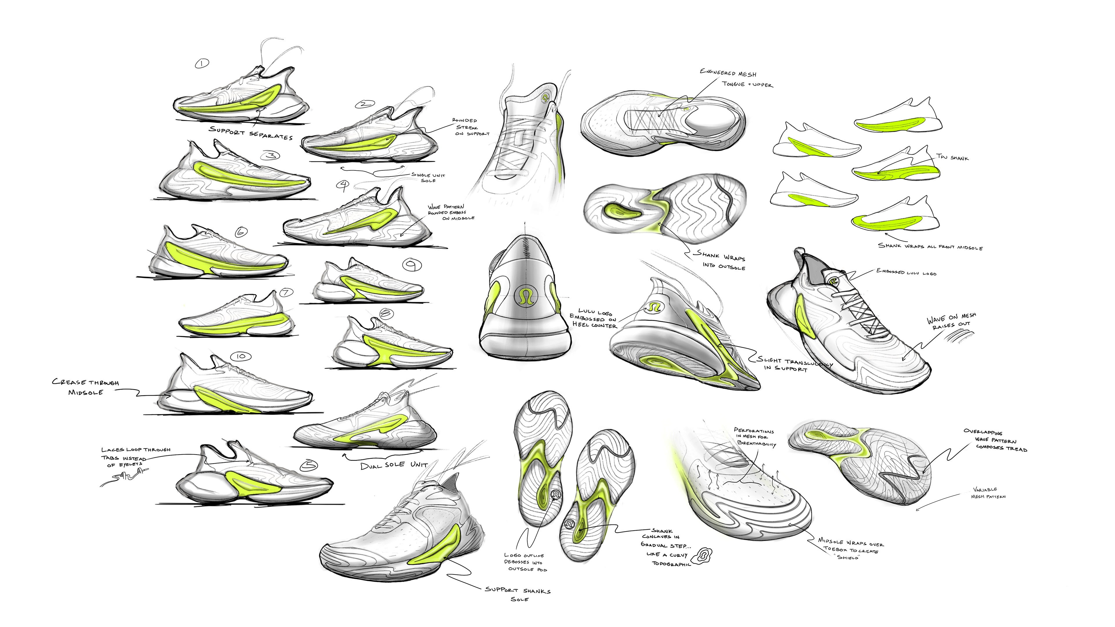 The Lululemon Courtfeel is a conceptual performance tennis shoe I designed as an addition to Lululemon's new and growing performance footwear lineup. Just as Lululemon has entered footwear, they've also been diving deeper into tennis as a targeted category- evidenced by various sponsorships of professional athletes such as Leylah Fernandez, and an increasing amount of tennis product campaigns. This project envisions what a Lululemon performance tennis shoe could be, following the established design language and signals of Lululemon's released footwear silhouettes.